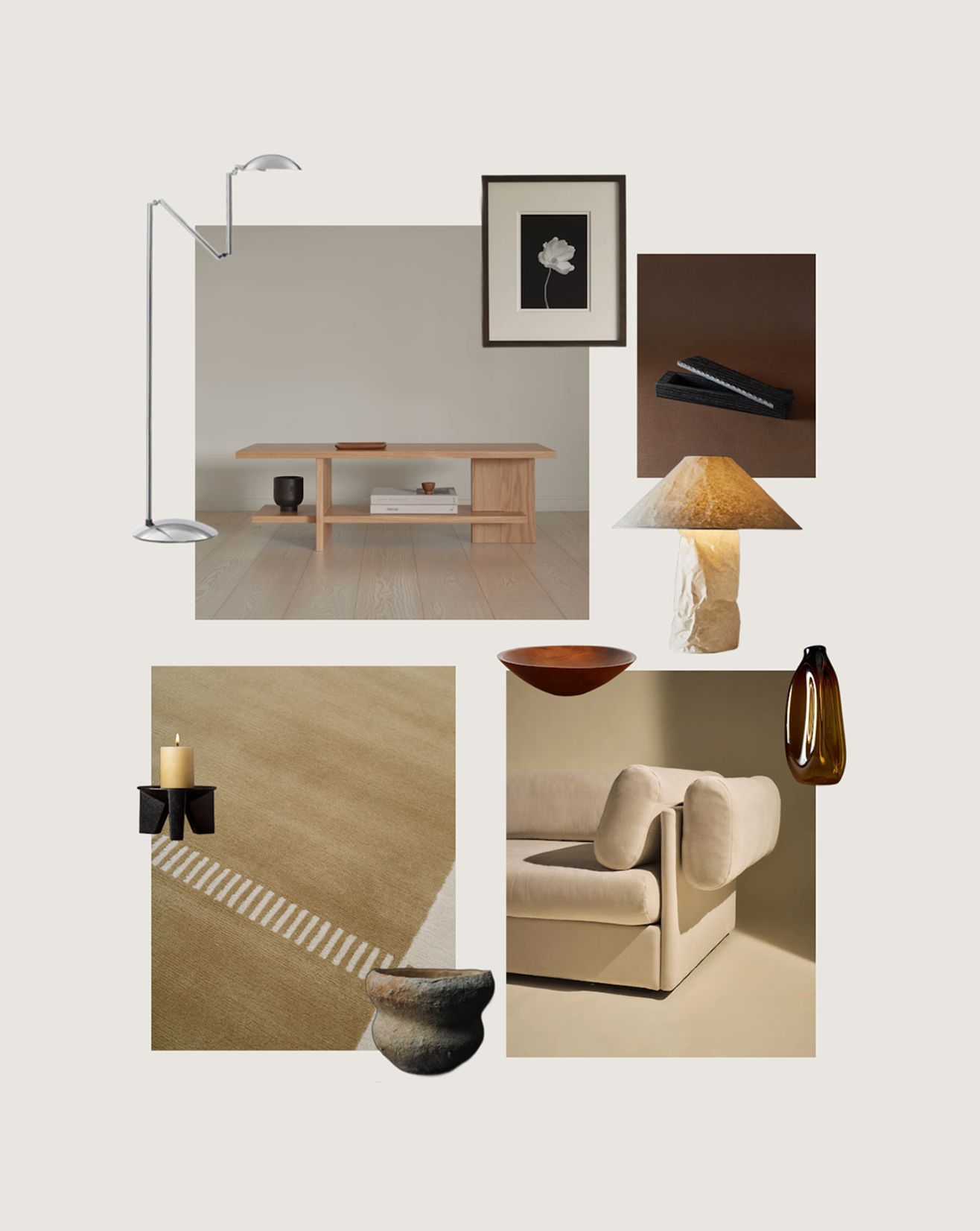 Lean into tactility by layering natural materials throughout the space. Ceramics, timber objects, glass, and textiles bring depth and variation, creating a living room that feels rich yet grounded. Blending old and new adds further depth and individuality. Look for handcrafted or one-of-a-kind pieces that carry a sense of history, and don’t be afraid to mix contemporary elements with vintage finds. These smaller details — often collected slowly over time — help shape a space that feels personal and lived in.